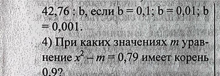 Корень уравнение это значение переменной при котором получаем правильное выражение. Подставим в уравнение значение переменной "х". Получаем уравнение: (0,9)^2 - m = 0,79; 0,81 - m = 0,79; m = 0,81 - 0,79; m = 0,02. Ответ: m = 0,02. При нахождении вычитаемого, необходимо от уменьшаемого отнять разность.