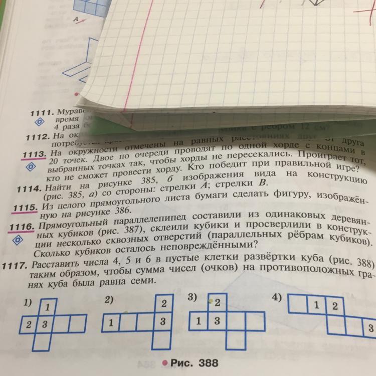 Расставить числа 4, 5 и 6 в пустые клетки развертки Куба