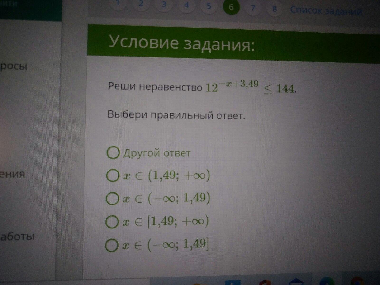 Верный ответ предпоследний. х∈[1.49; +∞)