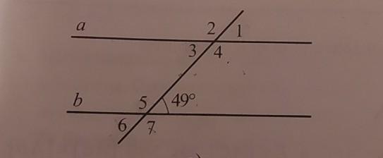 2) смежные углы в сумме дают 180 градусов, это углы: 6и7;5и6;5и49°;3и4;3и22и1;1и4