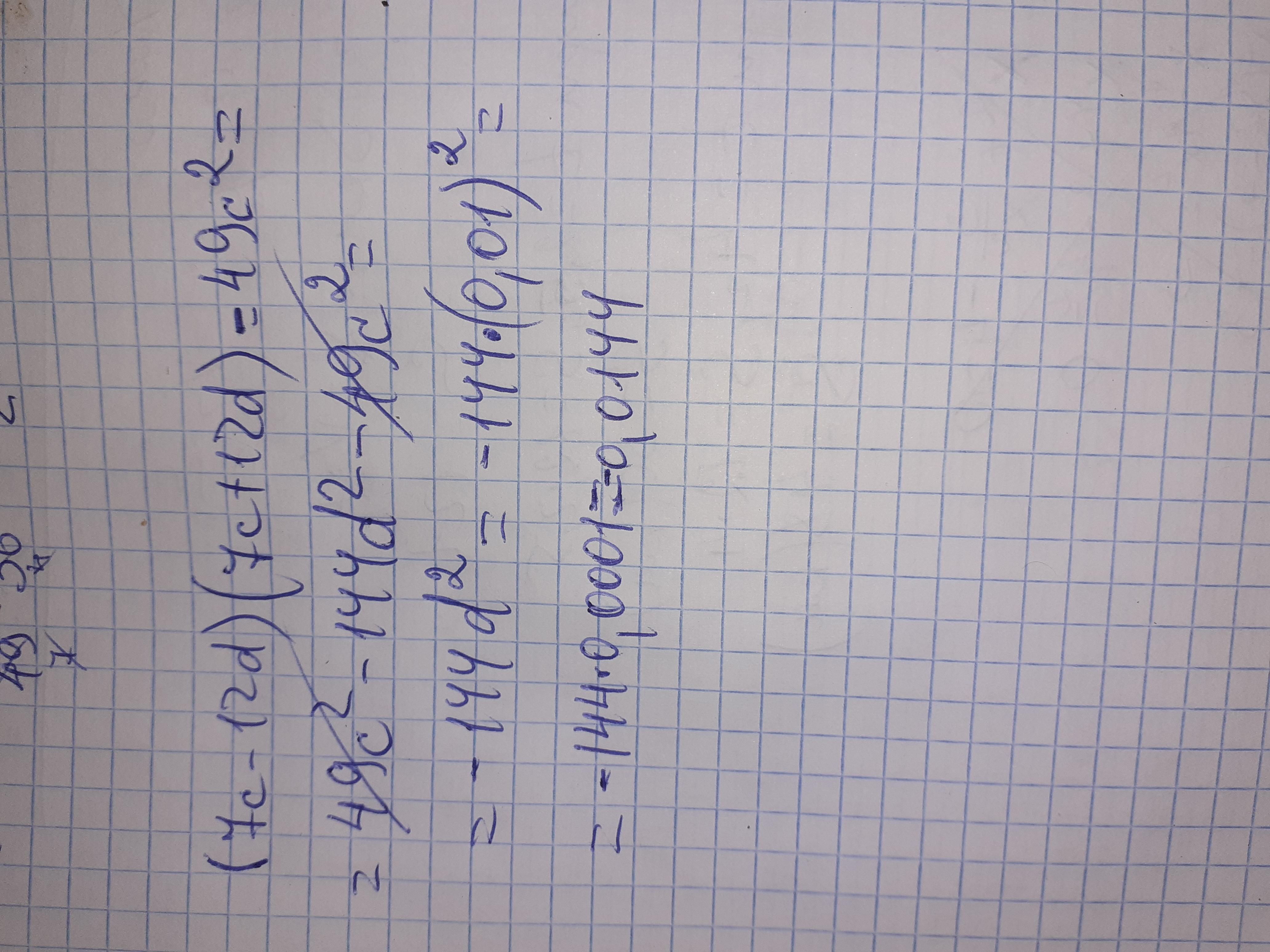 (7c−12d)⋅(7c+12d)−49c2=49c²−144d²−49c²=−144d²=−144*(0.01)^2=-0.0144.