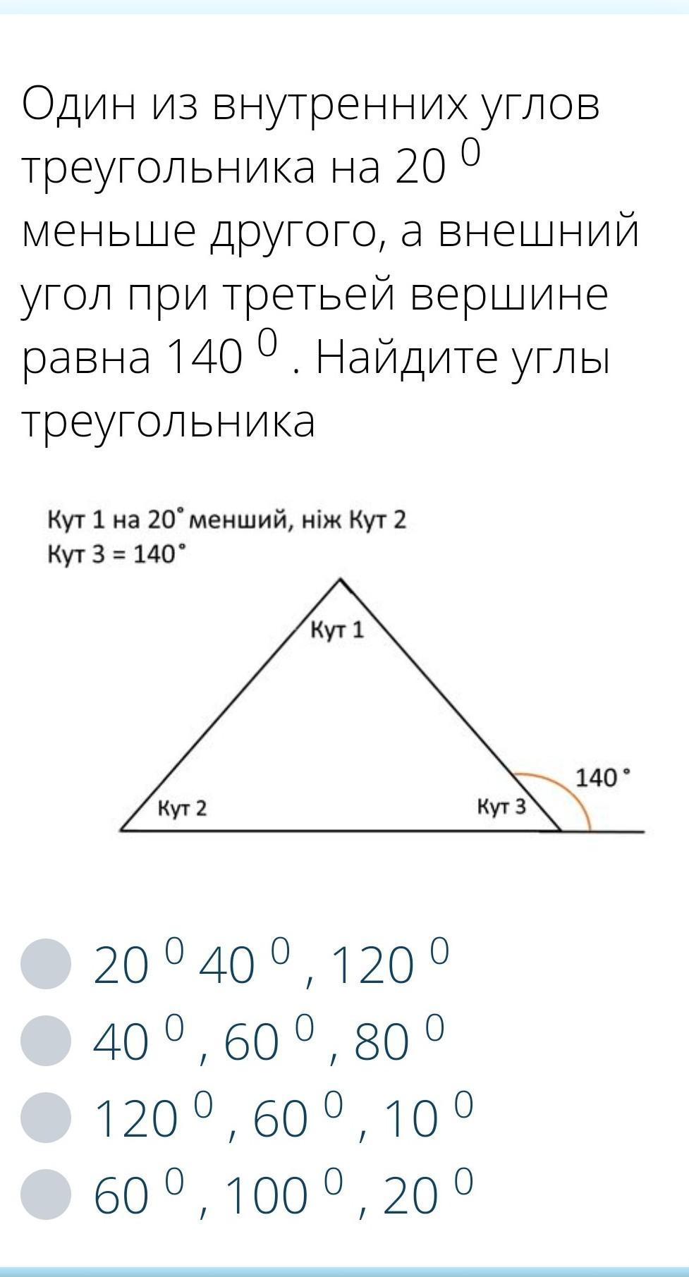 нехай 1 кут буде х,тоді 2 кут буде х+20