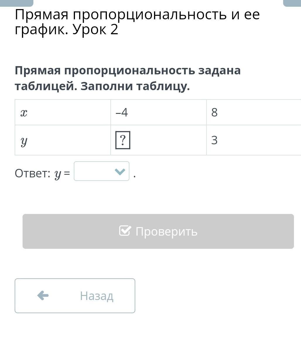 Прямая пропорциональность задана таблицей. Заполни таблицу.