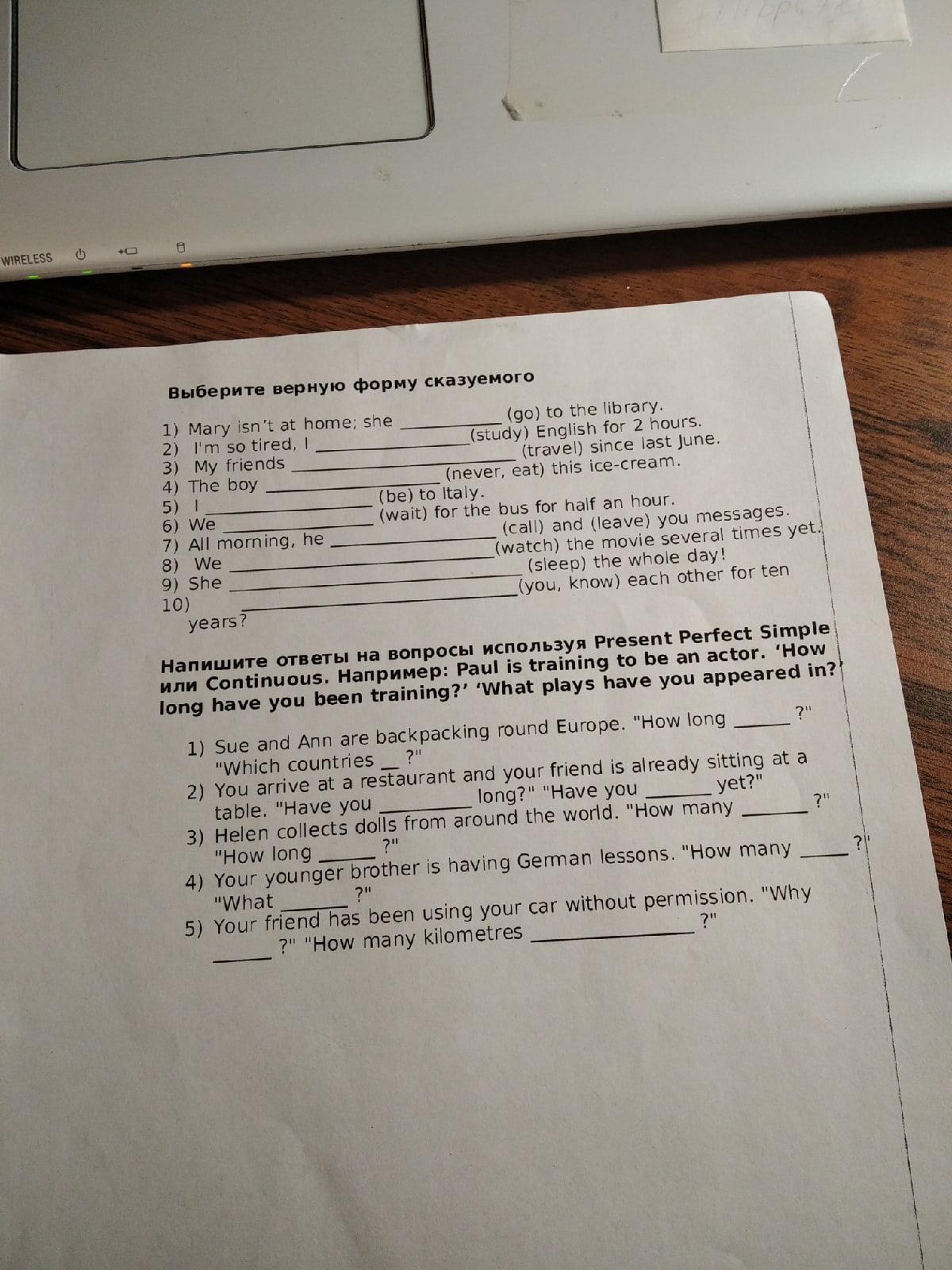- Sue an Ann are backpacking round Europe. 'How long have you been backpacking?' 'What countries have you been to?'