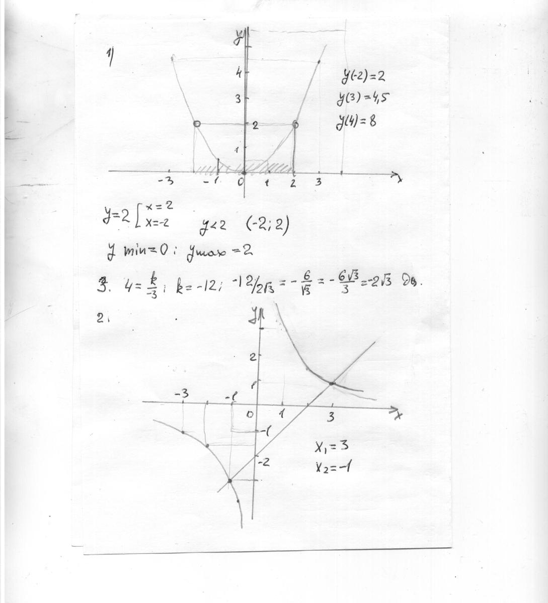 y=2 при х=2 и х=-2