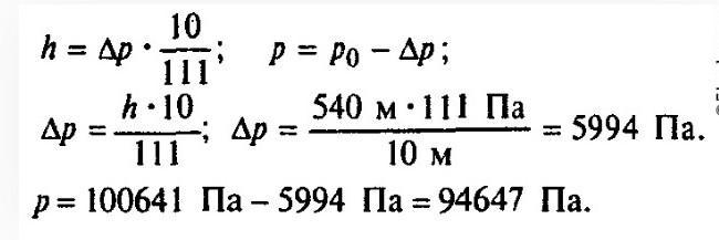 На высоте 540 метров оно поднимется на 540/12=45 мм рт. ст.