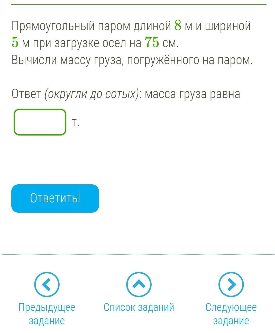 m=1000*8*5*0.75=30*10^3=30 тонн