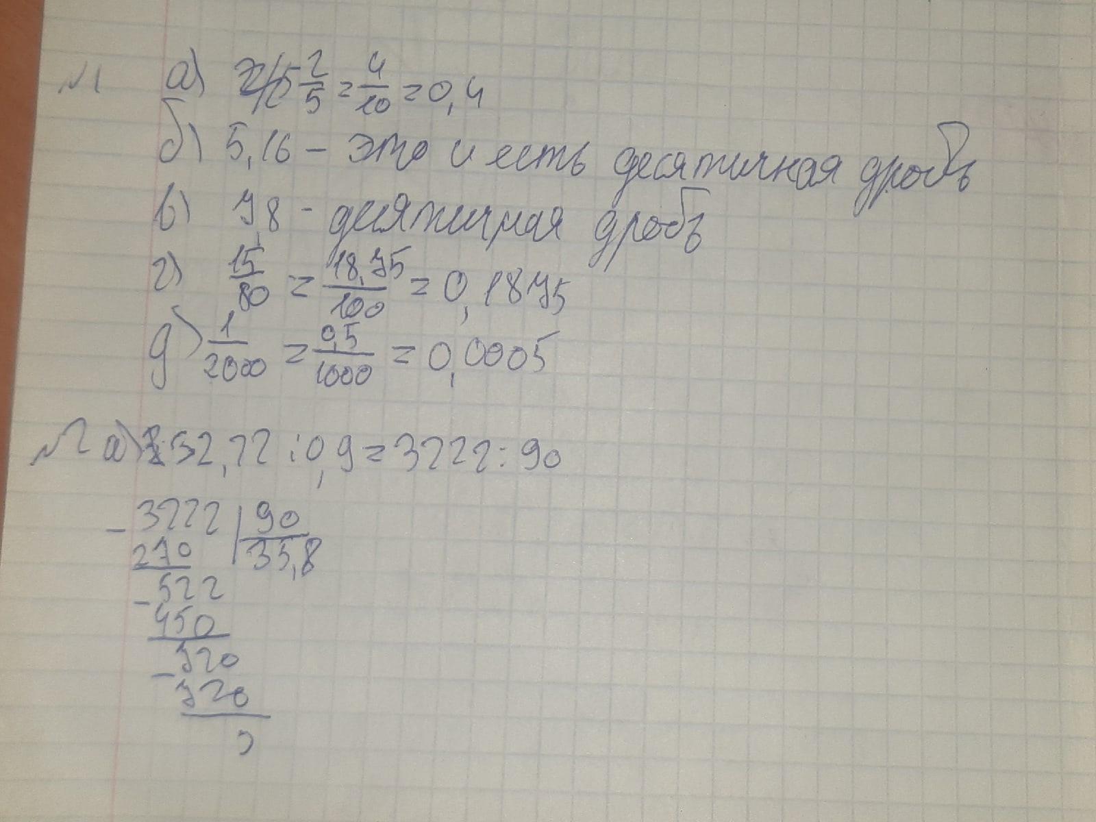 Переведите обыкновенную дробь в десятичную а)2/5 б)5,16 в) 7,8 г ) 15/80 д ) 1/2000
