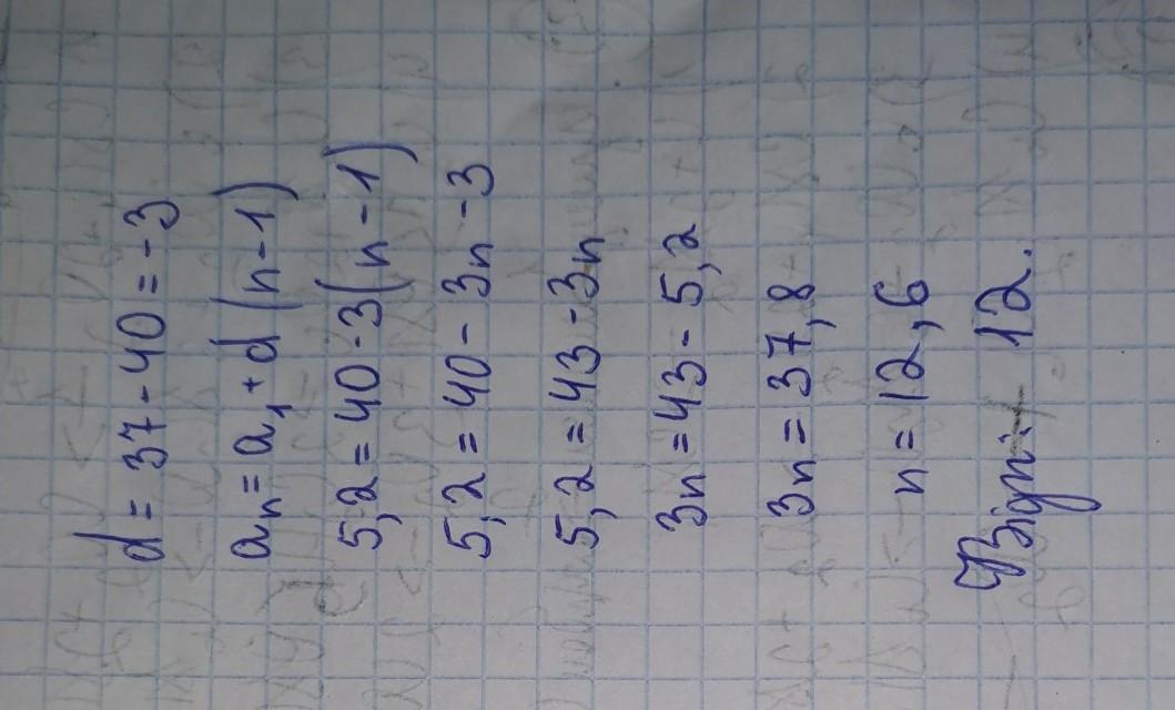 скільки членів більших від 5,2 містить арифметична прогресія 40,37,34...?
