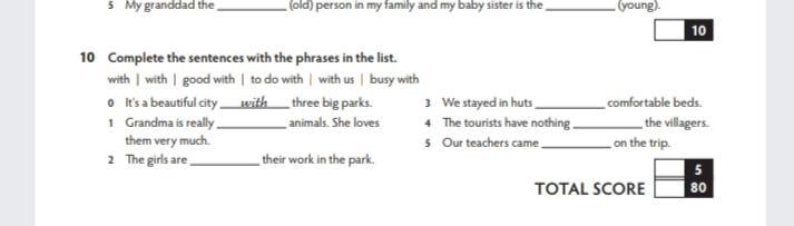 1)busy with 2) good with 3) with 4) to do with 5) with us