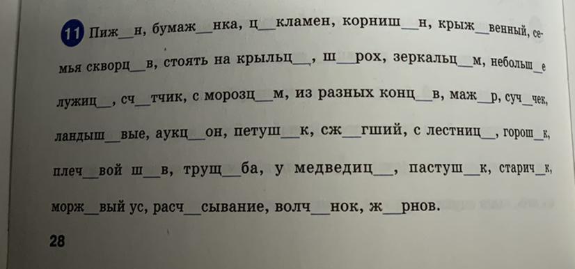 Пижон, бумажонка, цикламен, корнишон, крыжовенный, семья скворцов, стоять на крыльце, шорох, зеркальцем, небольшие лужицы, счётчик, с морозцем, из разных концов, мажор, сучочек, ландышевые, аукцион, петушок, сжегший, с лестницы, горошек, плечевой шов, трущоба, у медведицы, пастушок, старичок, моржовый ус, расчёсывание, волчонок, жернов.