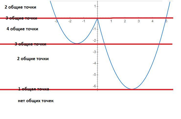 в) при -6,25<m<-2,5 и 0<m прямая y=m имеет с графиком y=x^2-4|x|-x две общие точки