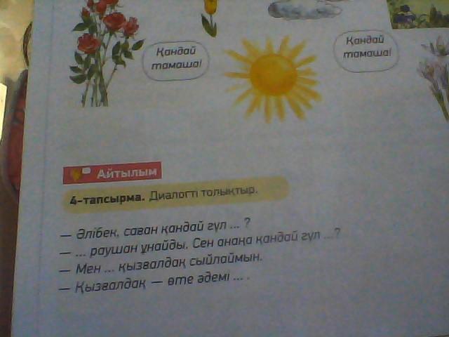 Маған раушан ұнайды.Сені анаңа қандай гүл сыйлайсың?