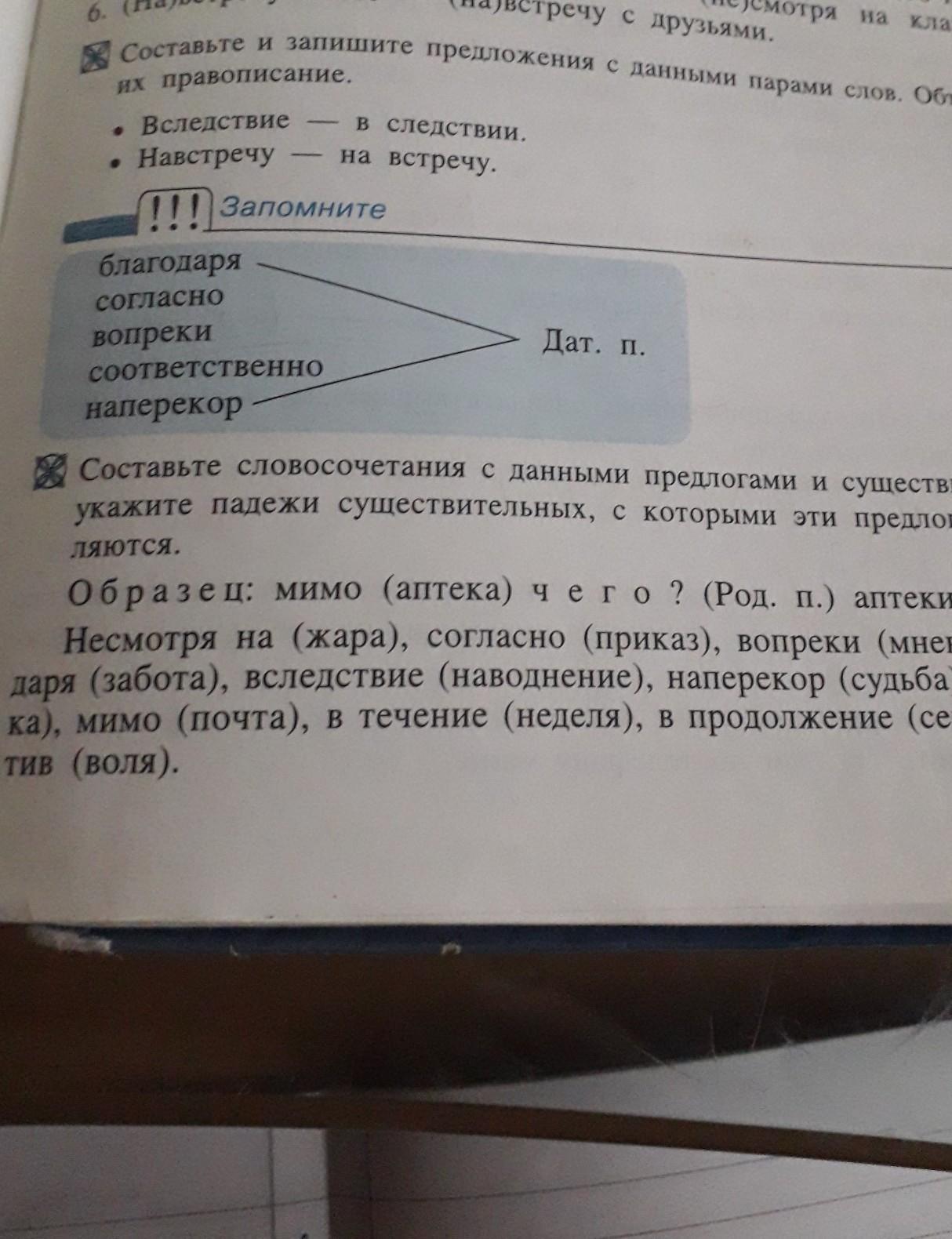Составьте словосочетания с данными предлогами и существительными Укажите падежи существительных с которыми эти предлоги употребляются