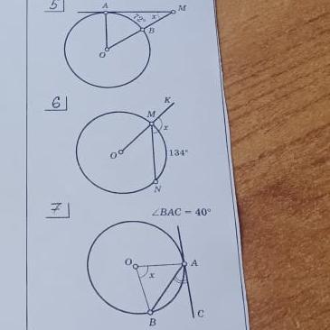 7) ВАС = 40°, OAC = 90°