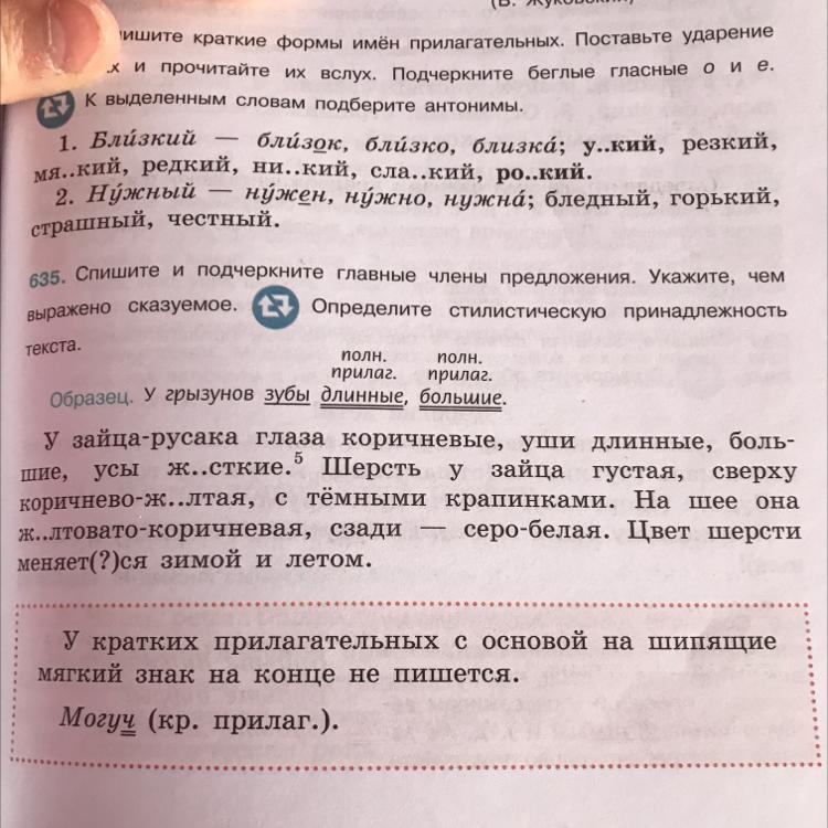 У зайца-русака глаза(подлежащее) коричневые(сказуемое,выражено прилагательным),уши(подлежащее) длинные(сказуемое,выражено прилагательным),большие(сказуемое,выражено прилагательным),усы(подлежащее) жесткие(сказуемое,выражено прилагательным).