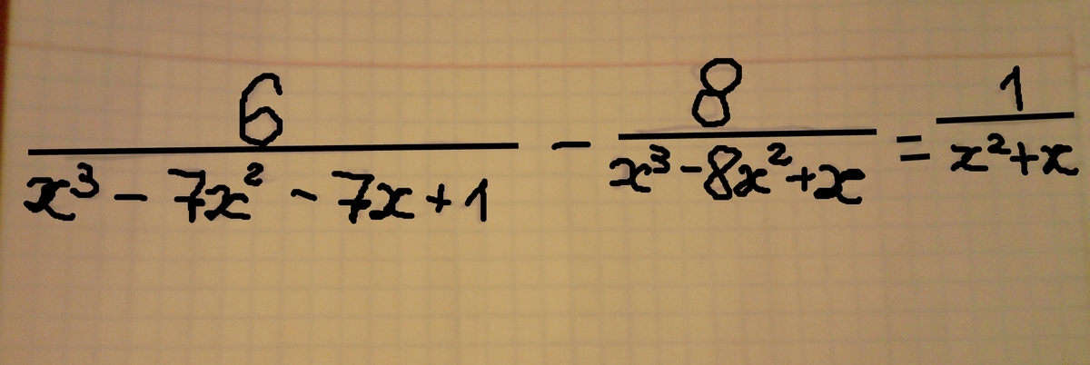 6/(x^3-7x^2-7x+1) -8/(x^3-8x^2+x) =1/(x^2+x)
