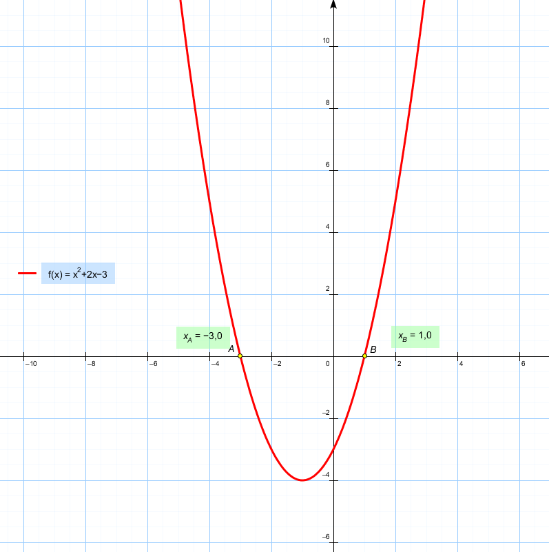 То есть решение x^2+2x-3=0 это точка пересечений функций y=x^2+2x-3 и y=0 (1 изображение), точки пересечения, то есть корни -3 и 1