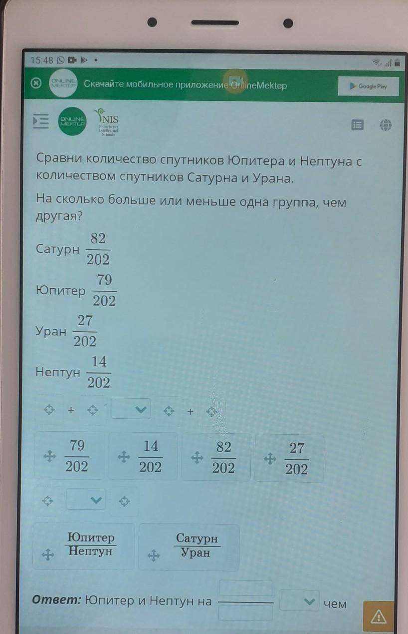 Ответ: Юпитер и Нептун (стрелка вправо) чем Сатурн и Уран