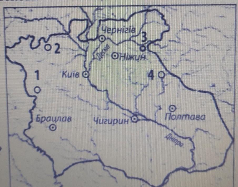 цифрою 1 на картосхемі позначено місце битви, де гетьман Ю Хмельницький зазнав поразки у 1660р.