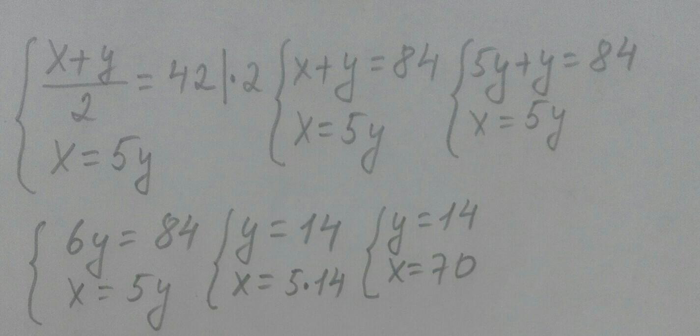 середнє арифметичне двох чисел дорівнює 42.Знайди ці числа, якщо одне з них у 5 разів менше за друге
