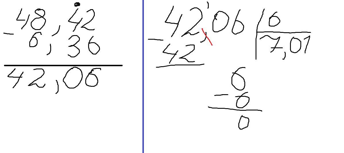 (48,42 - 6, 36) : 6 =42,06:6=7,01