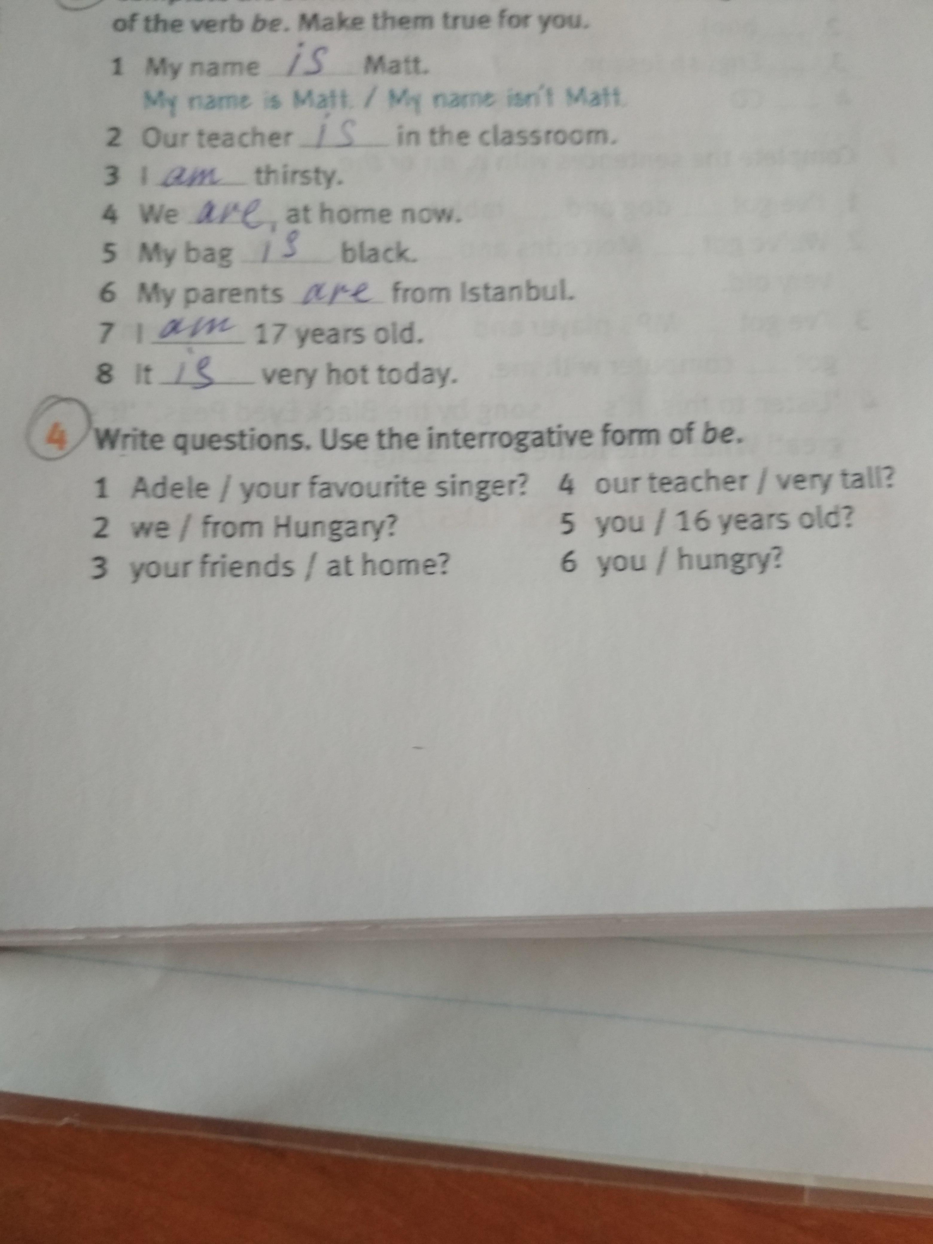 1. Is Adele your favourite singer? 2. Are we from Hungary? 3. Are your friends at home? 4. Is our teacher very tall? 5. Are you 16 years old? 6. Are you hungry?
