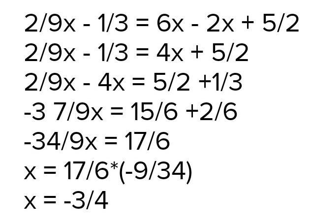 2/3(1/3-1/2)=6х-2(х-1 1/4)