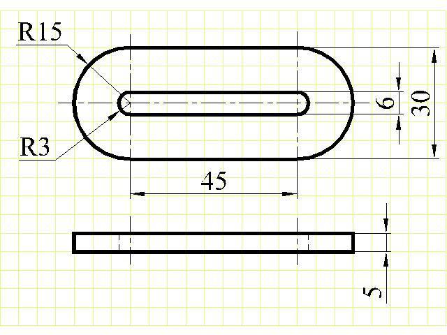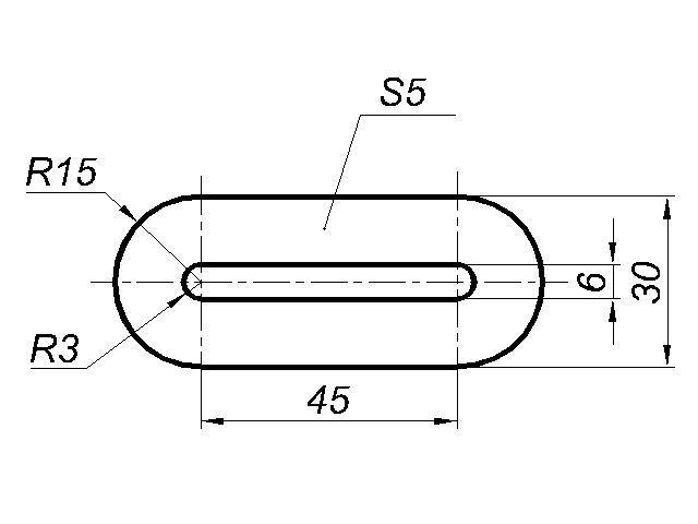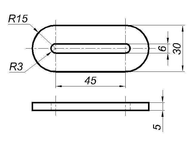 Третий чертеж: Для плоских деталей можно чертить только вид спереди. Обозначение S5 говорит, что толщина детали = 5 мм.