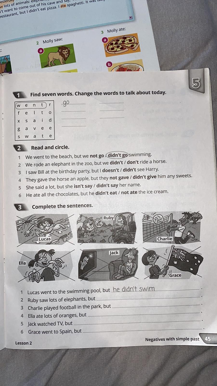2) 2. didn't; 3. didn't; 4. didn't give; 5. didn't say; 6. didn't eat