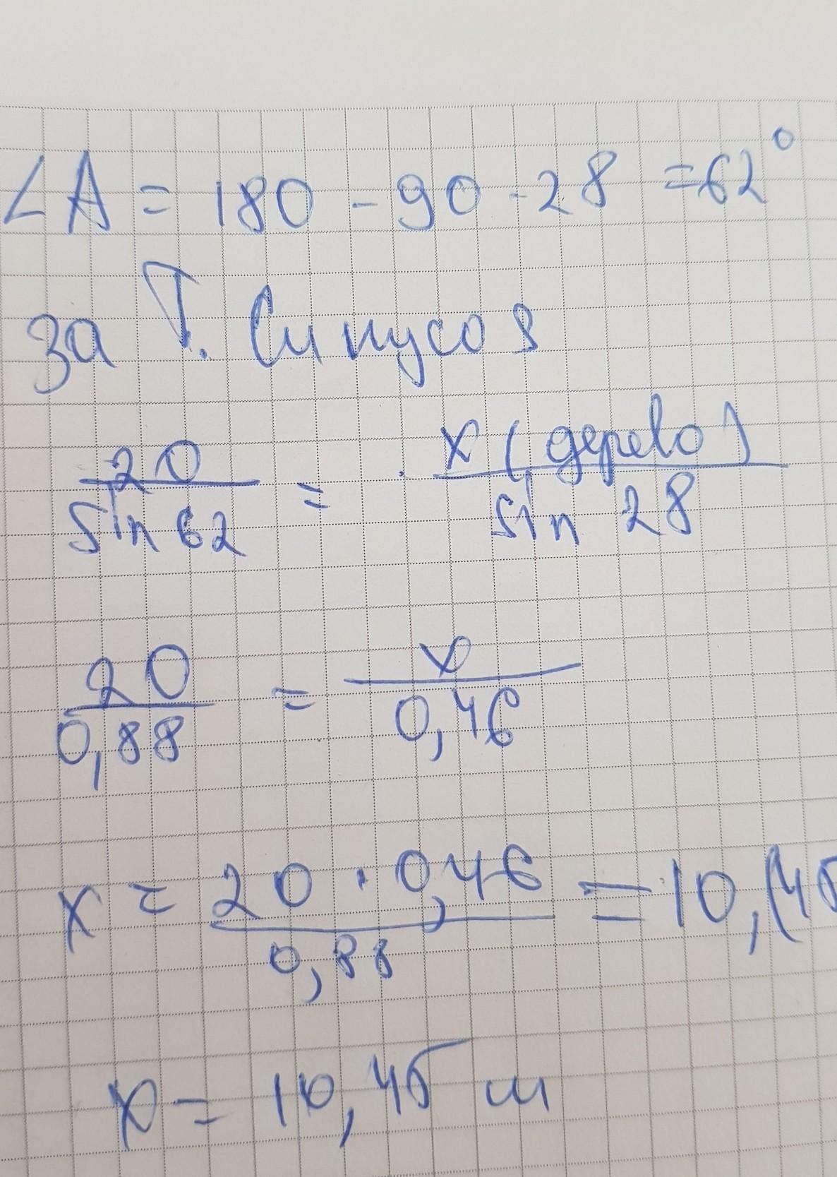 Терміново! Допоможіть будь-ласка з геометрією. Знайдіть висоту дерева AC, якщо BC дорівнює 20 м, a