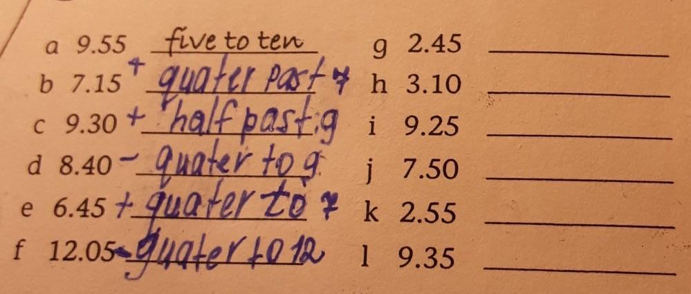 например: 16:50(четыре часа 50 мин) ну ок 4:50 будет ten (потому что в часу 60 мин а 60-50=10) ten to five (пять потому что ДО 5 часов)