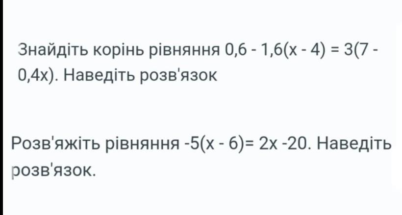 0,6 - 1,6 · (х - 4) = 3 · (7- 0,4 х).