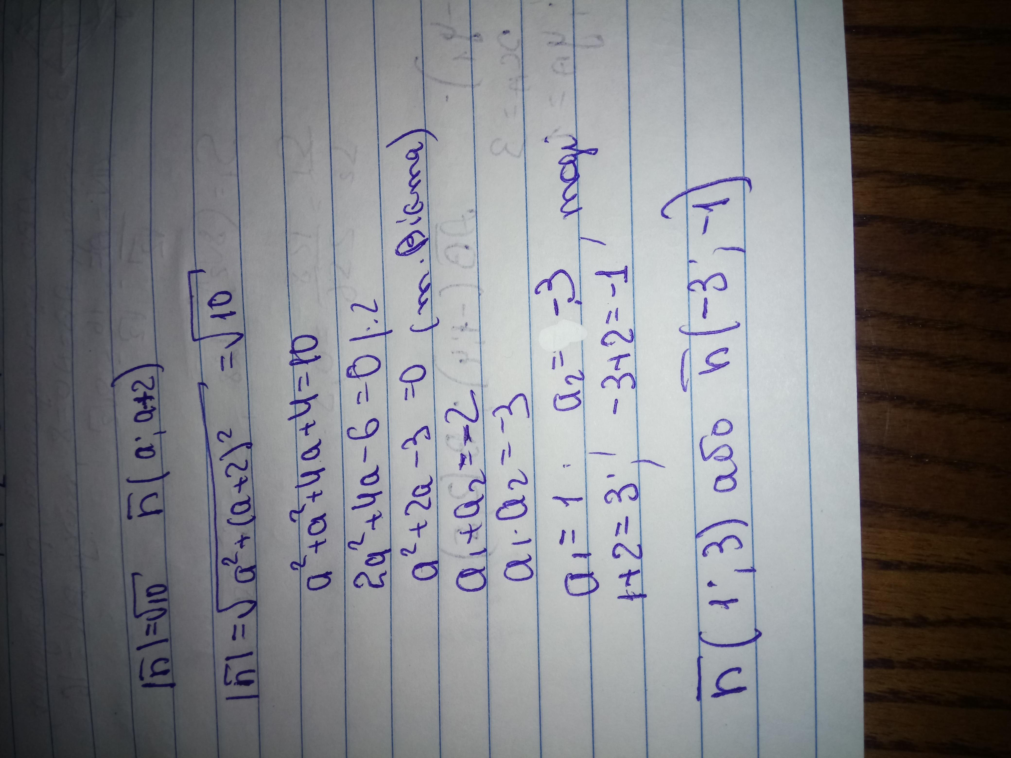 Модуль вектора n дорівнює √10, а його перша координата на 2 менша, ніж друга координата. Знайдіть координати вектора n.