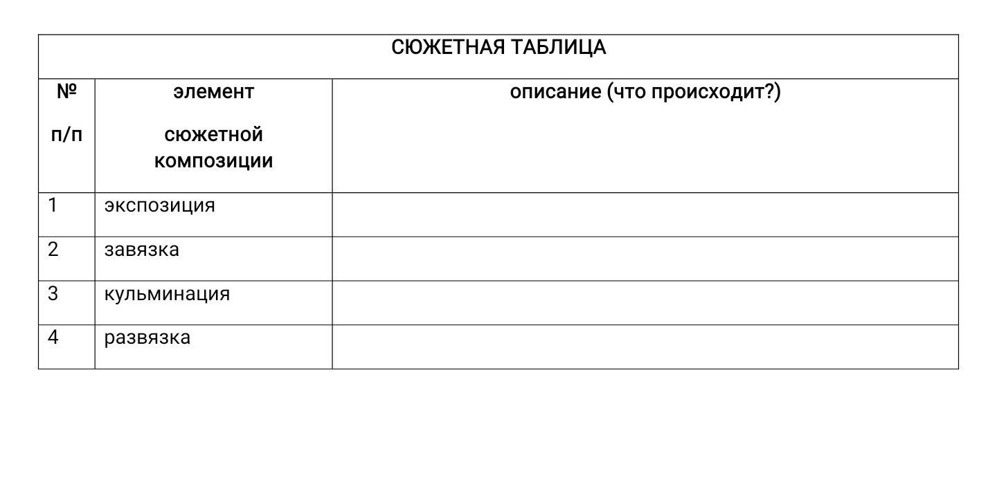Нужно заполнить сюжетную таблицу рассказа В.В.Набокова Рождество