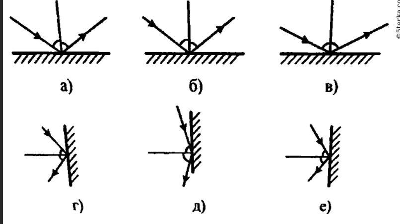 достройте недостающие элементы на рисунке 113,покажите в каждом случае падающий луч, отраженный луч и отражающую поверхность