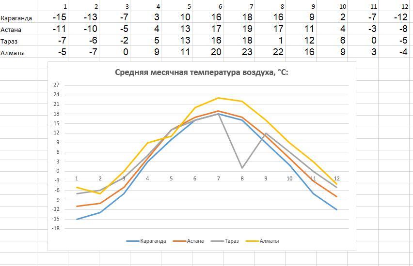 СРОЧНО!! ДАЮ 50 БАЛЛОВ Средняя месячная температура воздуха, °С: