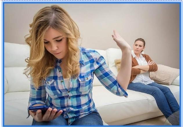 Дівчина, розмовлявши про щось цікаве з мамою, бачить повідомлення, написане від когось, заради пристойності вирішили відійти і відповісти.