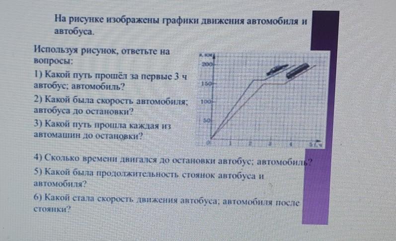 4) Сколько времени двигался до остановки автобус, автомобиль?