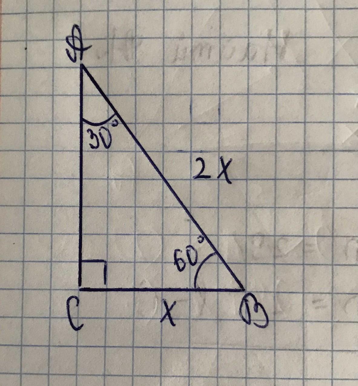 2) СВ=х, АВ=2х ( против угла в 30°) , то х+2х=21 ( по условию )