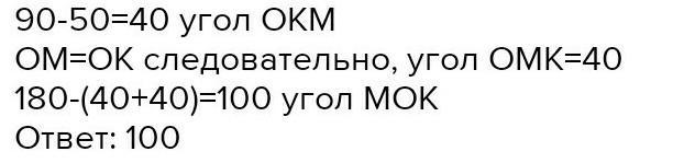 прямая касается окружности в точке K.точка o-центр окружности. хода KM образует с васательной угол равный 50° найдите величину угла MOK отдайте дайте в градусах