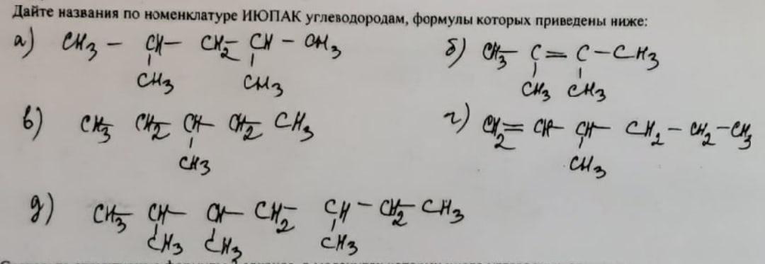 дайте названия по номенклатуре ИЮПАК углеводородам, формулы которых приведены ниже.