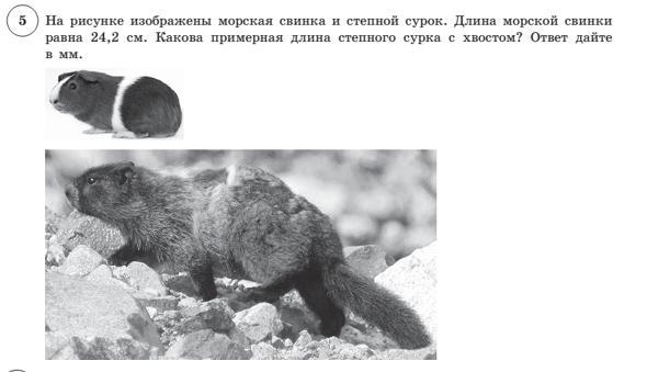 По рисунку длина сурка с хвостом примерно равна трем длинам морской свинки.
