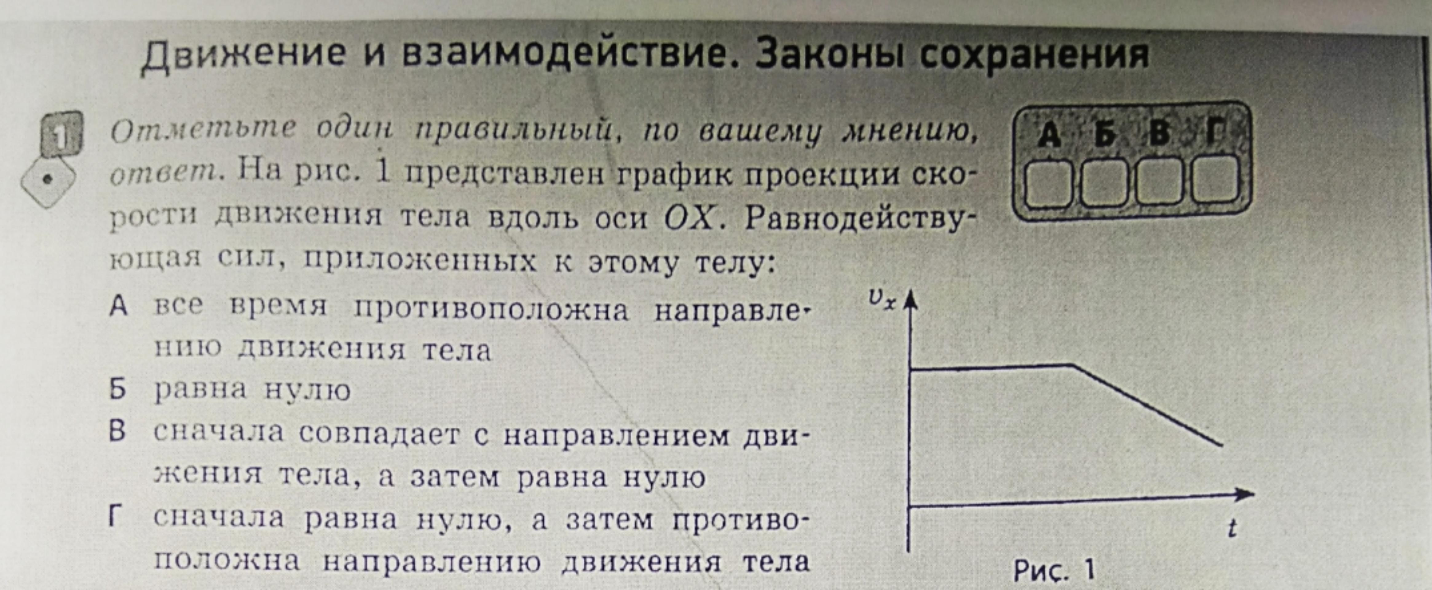 Срочно! На рисунке представлен график проекции скорости движения тела вдоль оси ОХ. Равнодействующая сил, приложенных к этому телу: