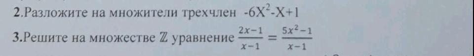 2.Разлажить на множество трёхчлен -6x в квадраде -x+1 ( на фото )