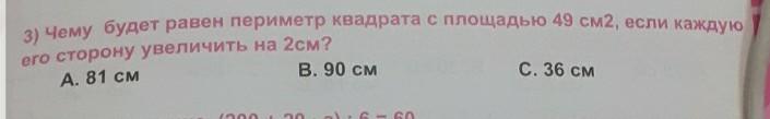 Ответ: C Пошаговое объяснение: Если это квадрат, значит все стороны равны. 49:4=7(см) - одна сторона квадрата в условии говорится что надо. Рада памоч