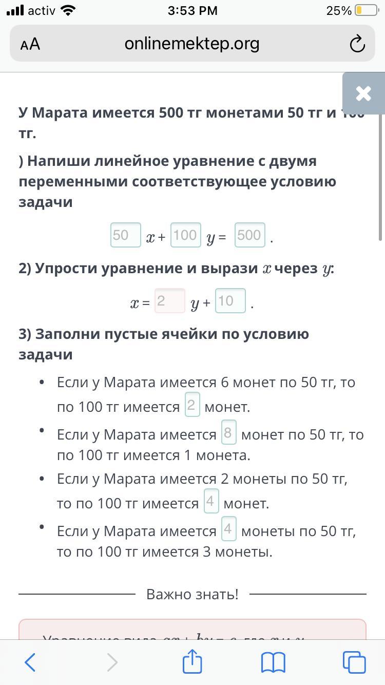 Если у Марата имеется 2 монеты по 50 тг, то по 100 тг имеется