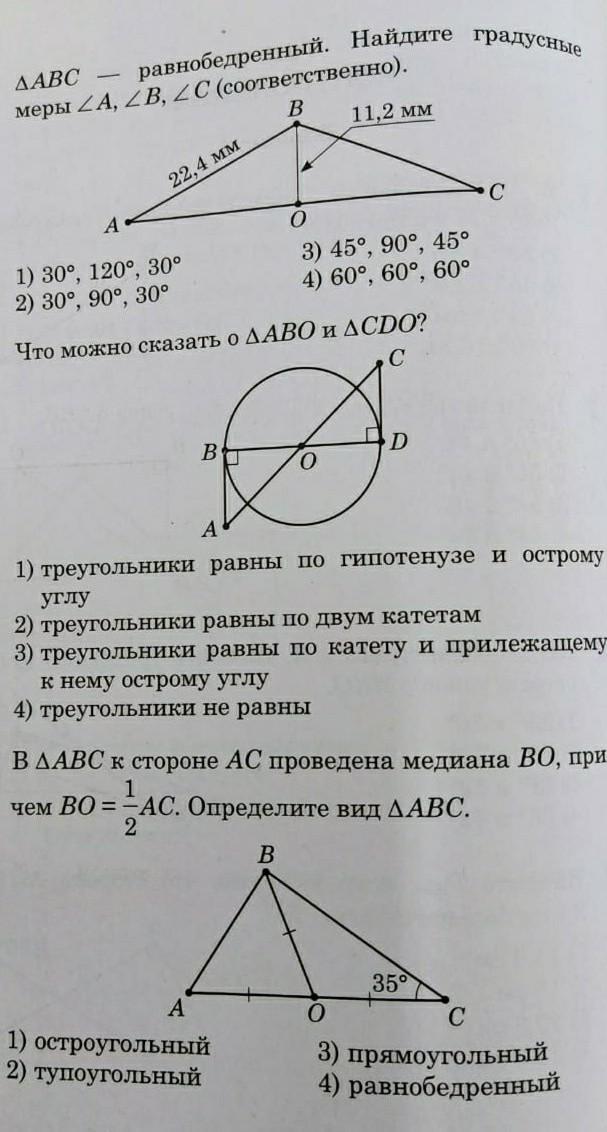 Номер 1. В п/у треугольнике катет равен половине гипотенузы, если лежит против угла в 30 градусов. Значит, угол а=углу с=30 градусов. Значит, угол в равен 120 градусов.