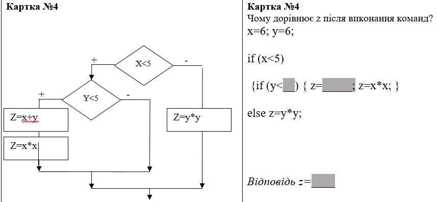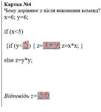 При начальных данных х=6 и у=6, при проверке условия х<5 будет получен результат FALSE, и следующим выполнится оператор в ветке "-", т.е. z=y*y.