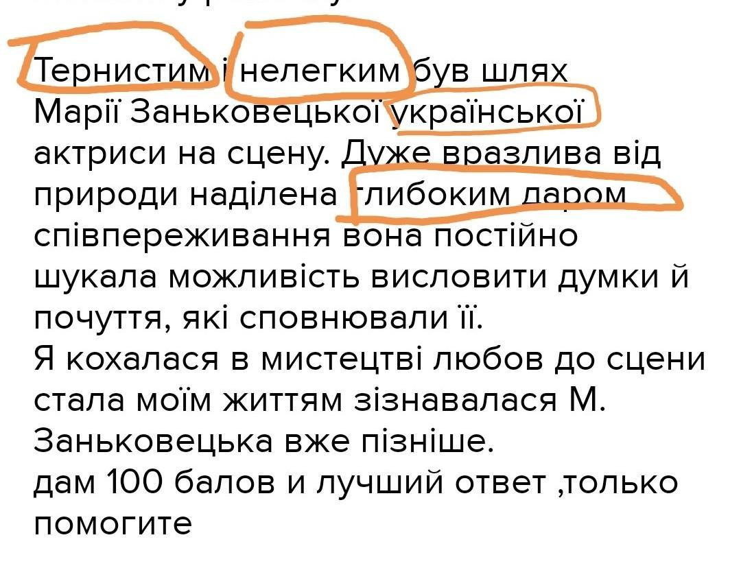 Тернистим і нелегким був шлях Марії Заньковецької української актриси на сцену. Дуже вразлива від природи наділена глибоким даром співпереживання вона постійно шукала можливість висловити думки й почуття, які сповнювали її.